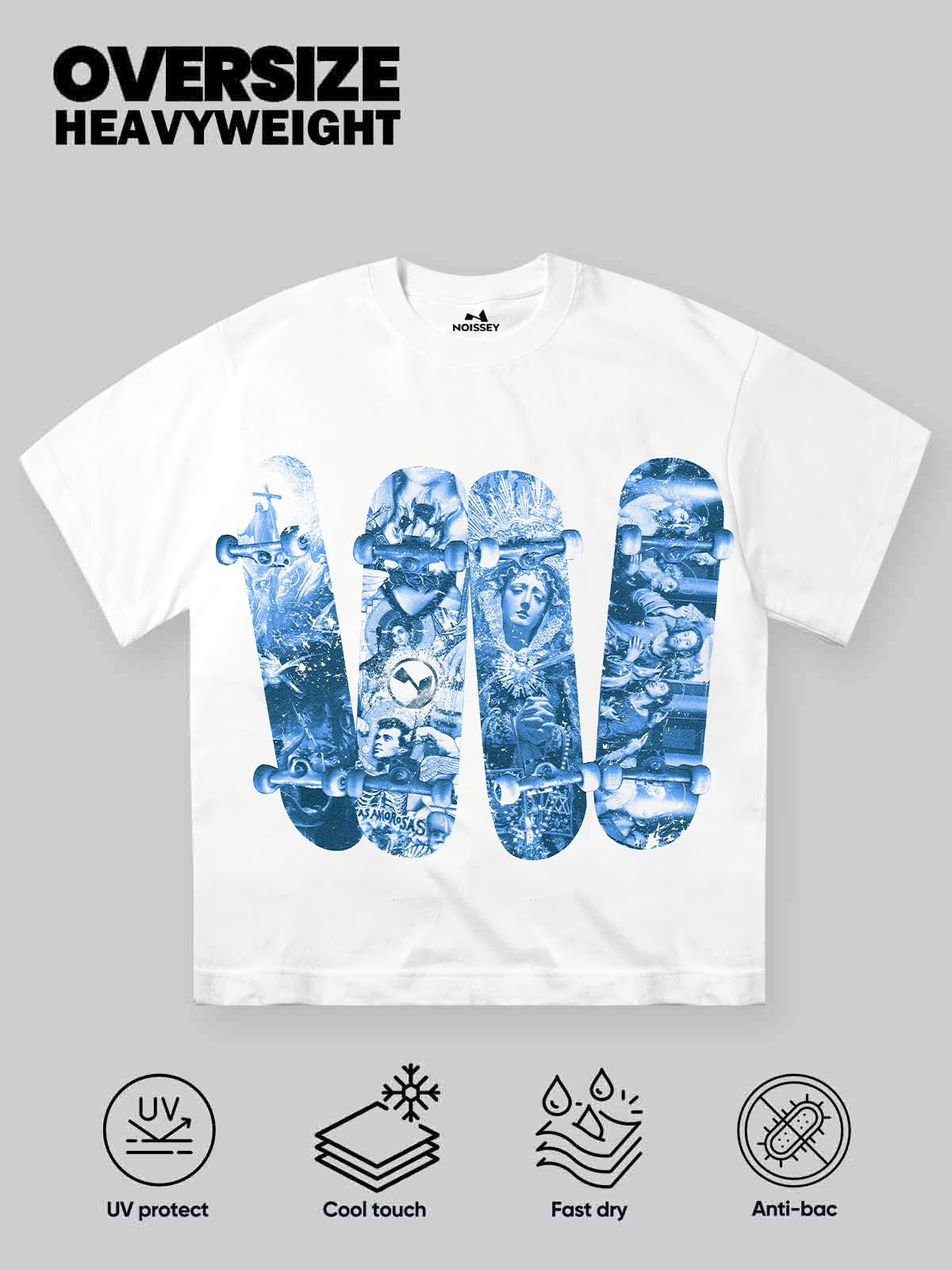 Religious Art Skateboarding Culture Printed Boxy Oversized T-shirt