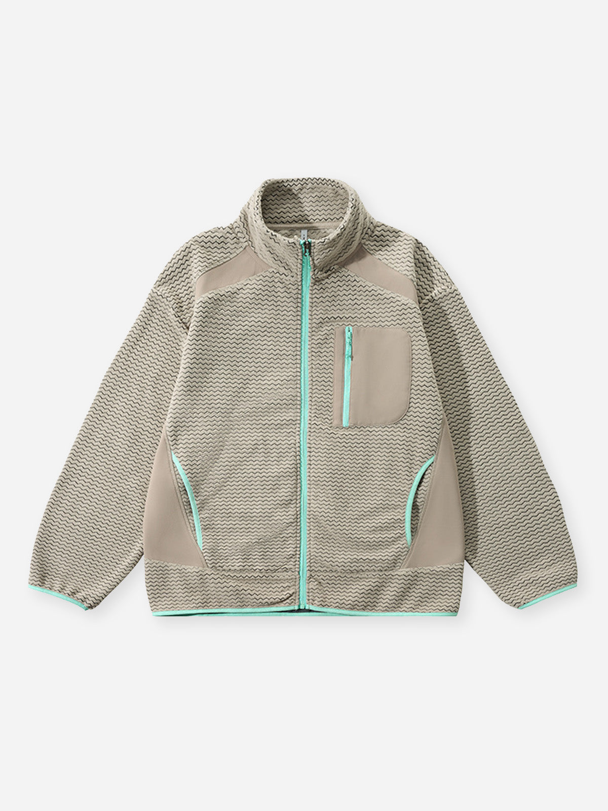 Wave Pattern Contrast Color Zip-up Jacket