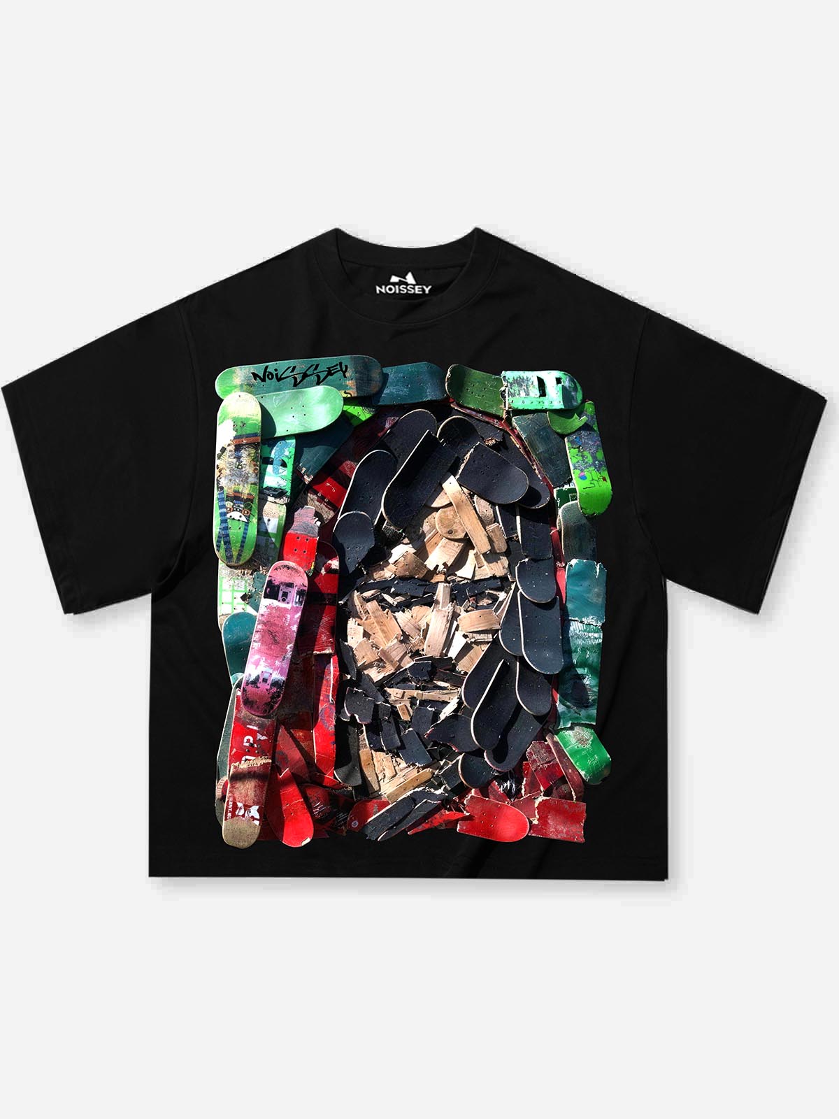 Shattered collage masked design, 350g heavyweight fabric, full texture, streetwear vibe!