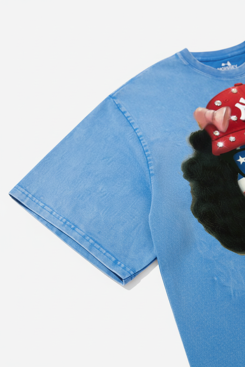 The "A Bad Case of Stripes" contemporary art washed T-shirt features a unique design with vibrant colors. The washed process endows it with a soft texture, perfectly showcasing a trendy and individualistic attitude.