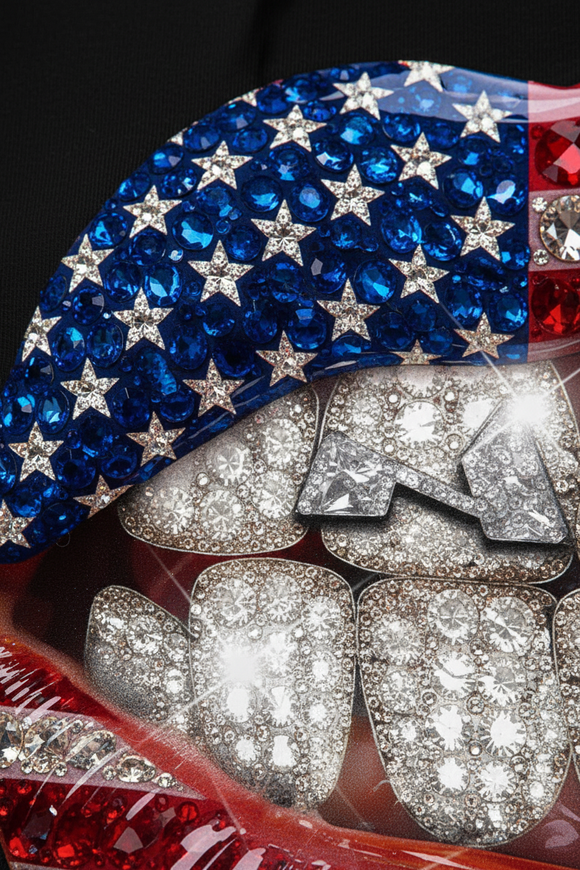National Flag Rhinestone Art Grills Print Boxy Oversized T-shirt