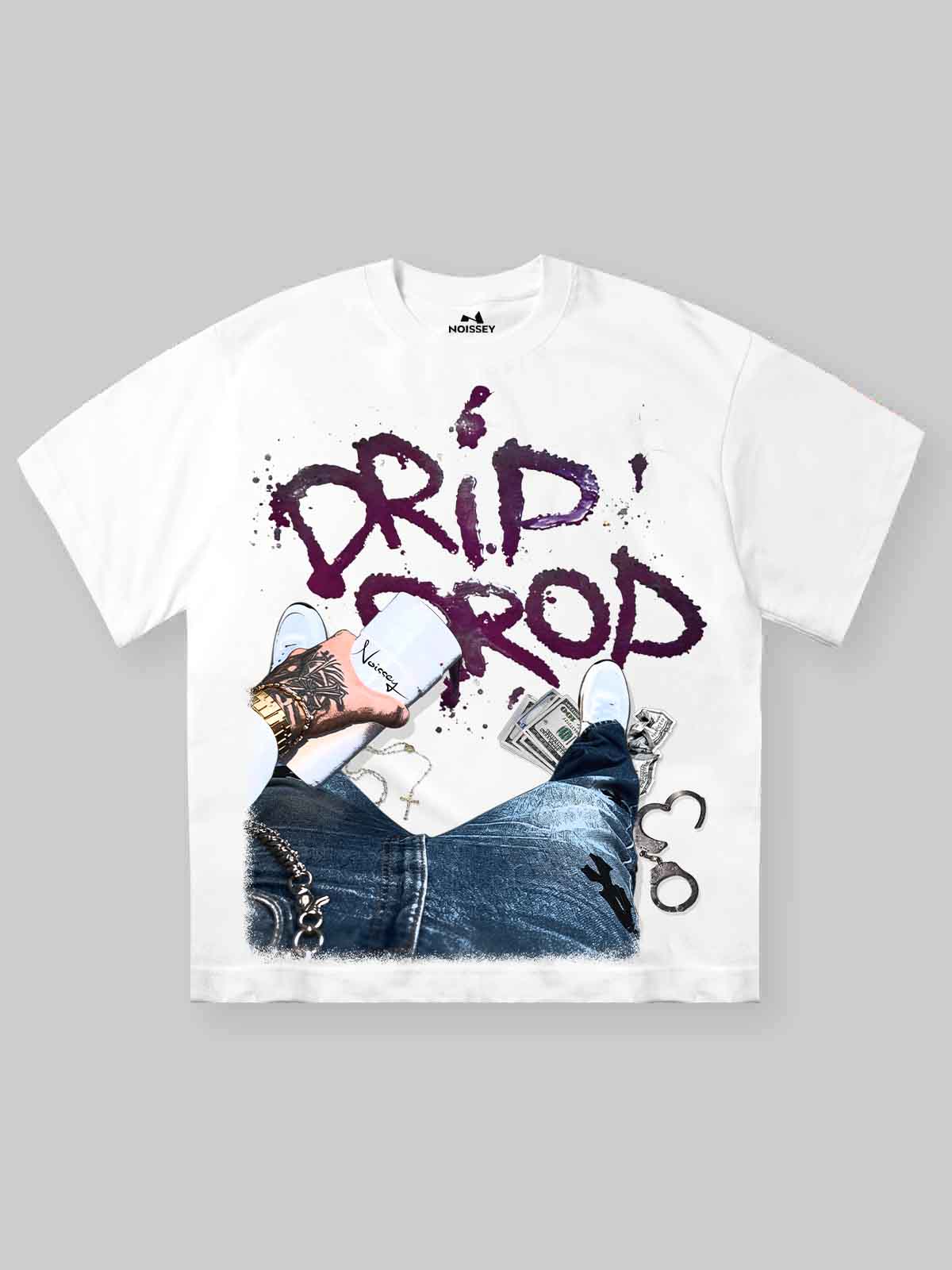 The Hook: Absolute focus. This Boxy Oversize Tee centers on a hyper-realistic graphic of a hand adorned with Iced-out Luxury Watches and gold rings, bound by a shimmering Diamond Handcuff. The artwork is set against a "stardust" backdrop, emphasizing the brilliance of the jewelry and the defiant message: "LOCK THE FUCK IN". Combining high-end hip-hop aesthetics with a powerful motivational drive, this piece is designed for those who remain unfazed by the noise.