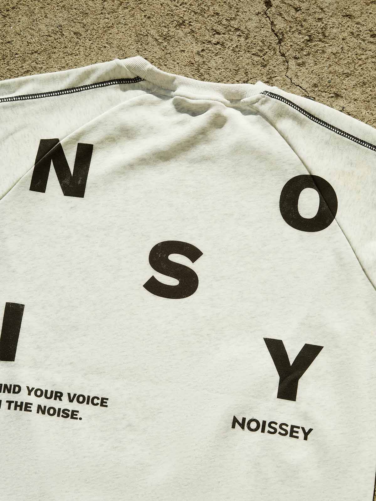 This light grey sweatshirt features a simple yet stylish design. The bold "NOISY" lettering on the back is full of personality, conveying the attitude of "finding your voice in the noise." Stitching details add texture, and the soft, comfortable fabric offers good warmth. Perfect for various occasions, it effortlessly creates a casual fashion look.