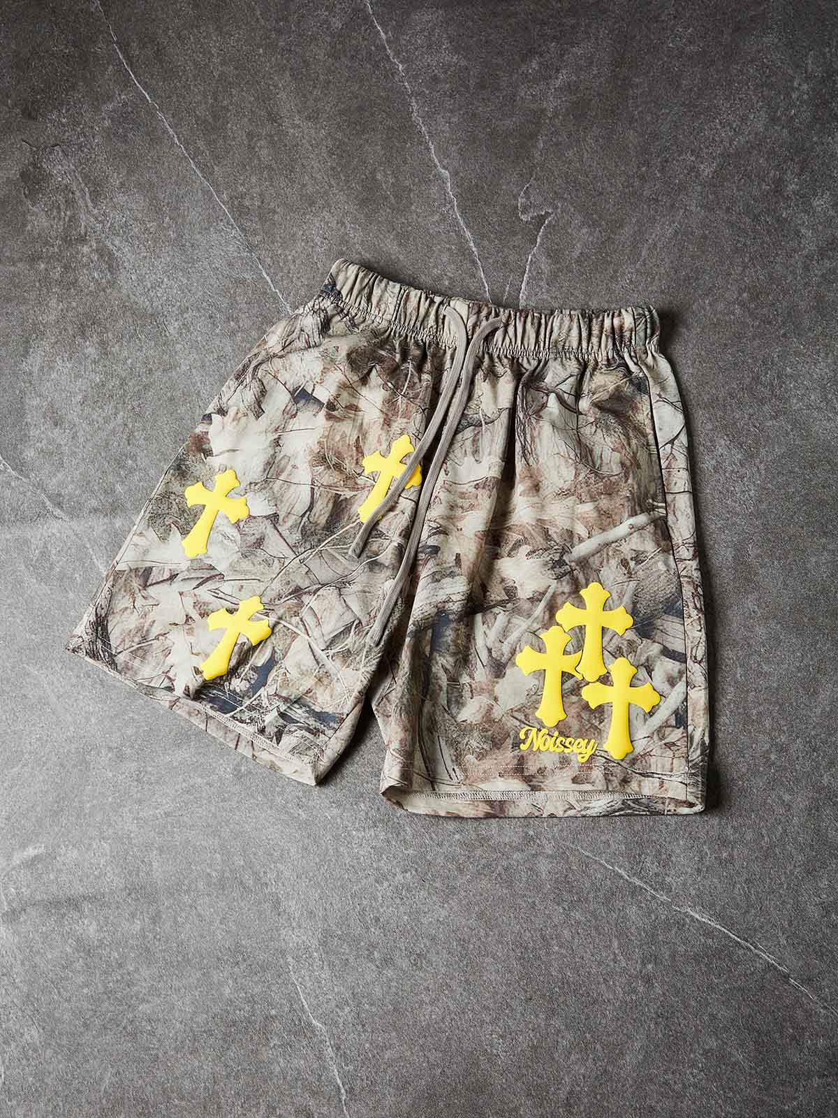 NOISSEY ALL-OVER PRINT REAL TREE BARK CROSS CLUSTER SHORTS