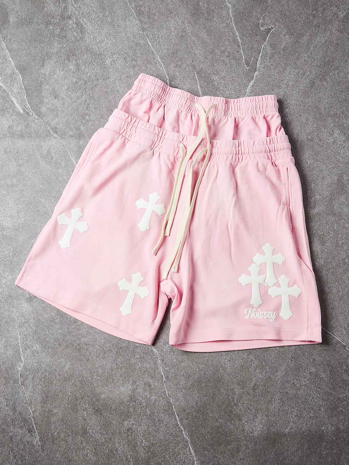 NOISSEY CHERRY BLOSSOM PINK WHITE CROSS CLUSTER GRAPHIC SHORTS