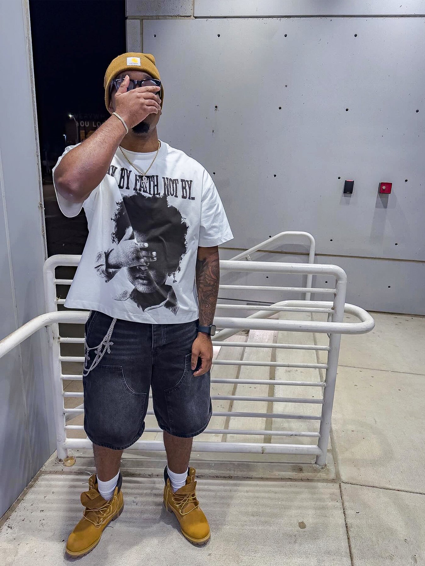 More than just a graphic, this tee is a statement of spirit. The NOISSEY "Walk By Faith" Tee features a powerful, high-definition portrait of a child covering their eyes, symbolizing trust in the unseen path ahead.