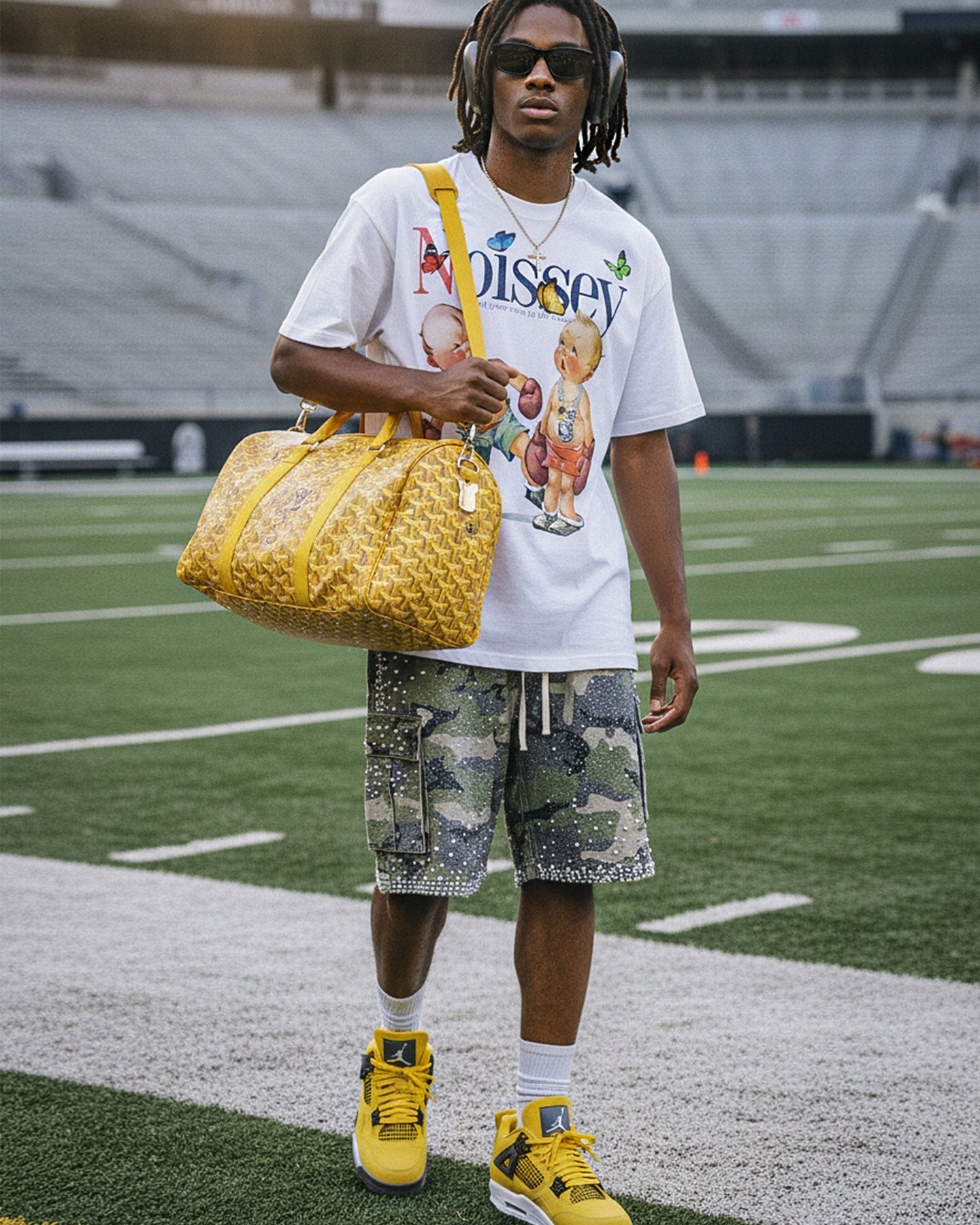 Details: Check out the silver chain on the young contender—street style starts in the cradle.