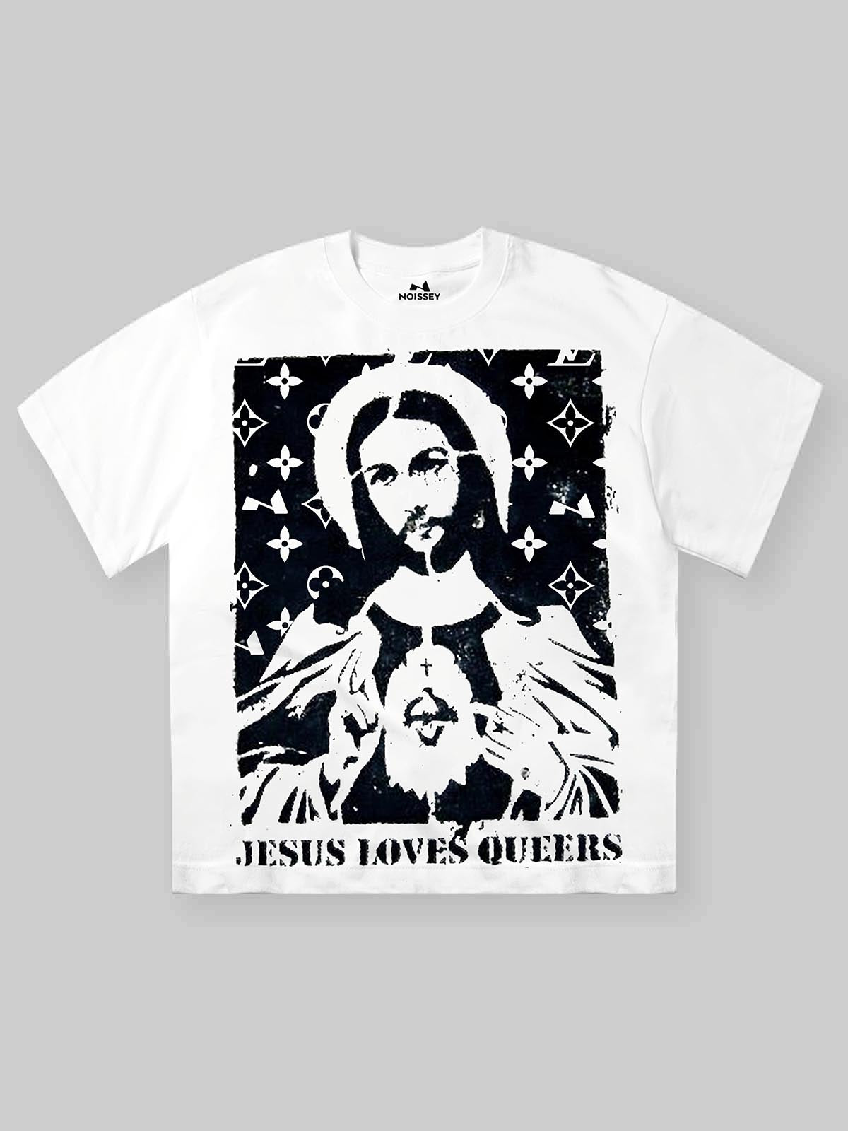 This T-shirt features the bold and unique art graffiti style with the theme of "JesusLove Queers", full of creativity and personality. The fabric is comfortable and skin-friendly. Wear it to show your uninhibited attitude and pursuit of diversity and inclusion. Get it now!