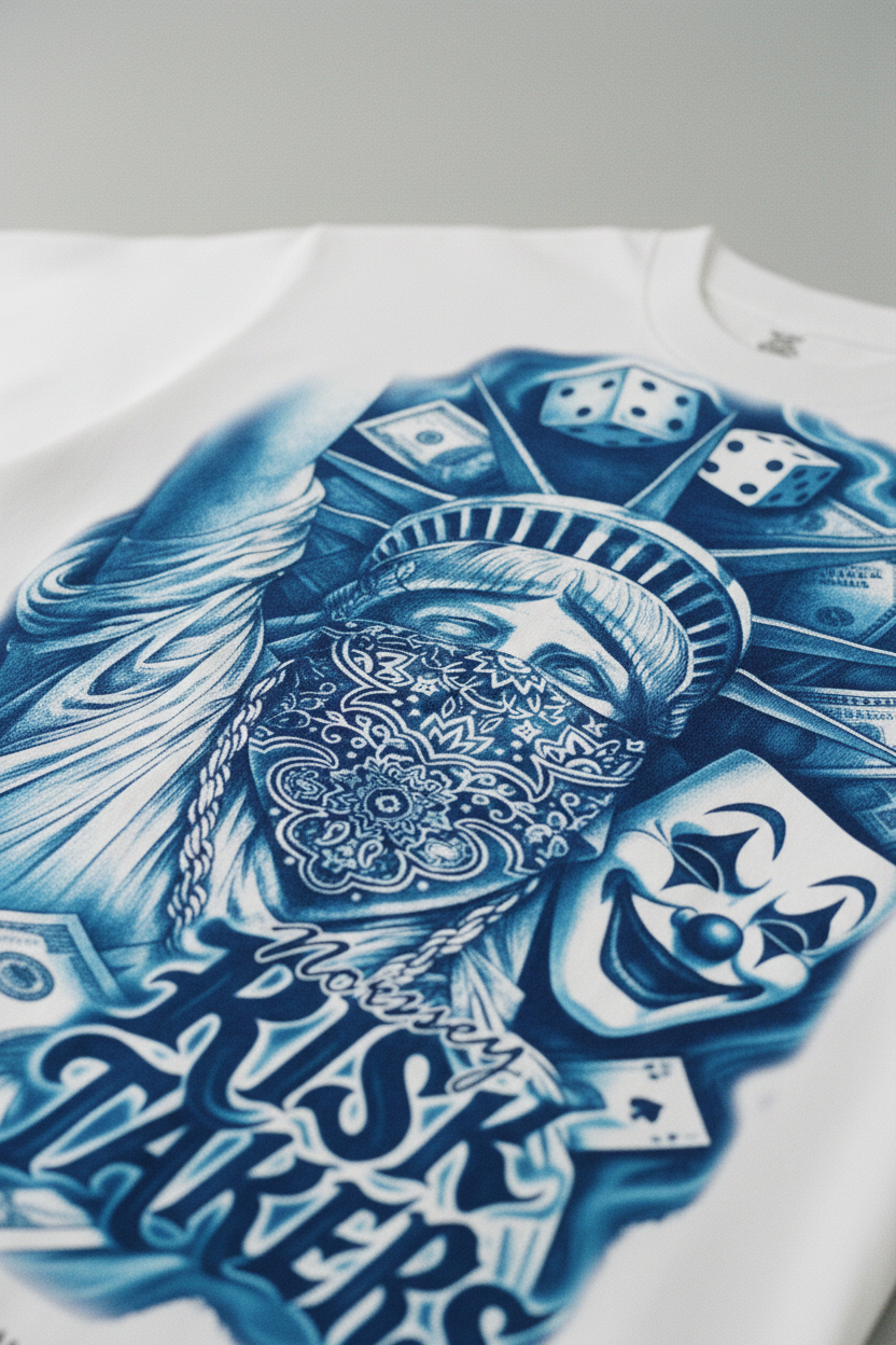 The Hook: Faith in the wild. Freedom in the streets. This piece pays homage to West Coast Chicano culture, blending the iconic Statue of Liberty with raw graffiti aesthetics for a powerful statement on urban resilience.