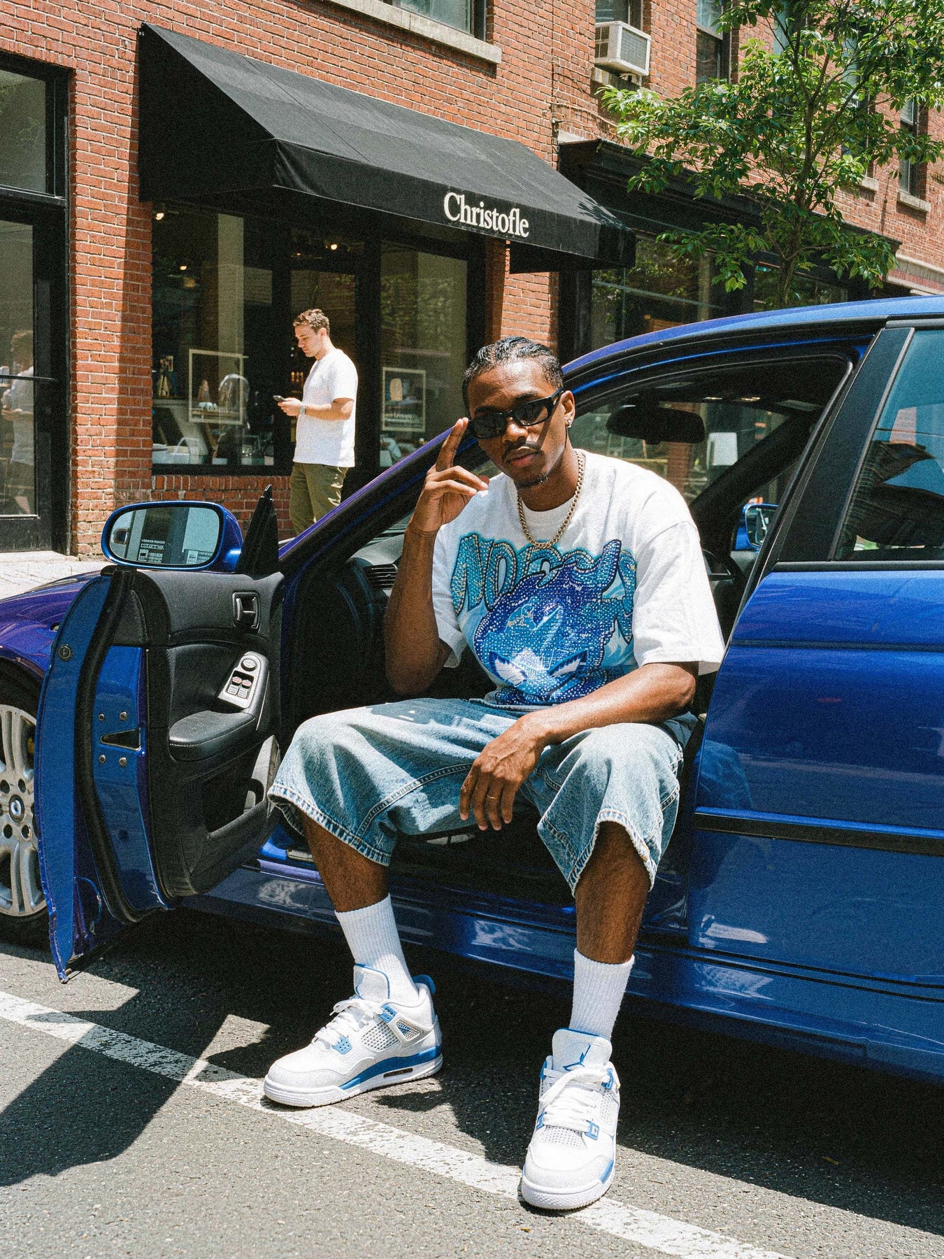Color: Optical White — a pure, bright white base that amplifies the blue crystal graphic and delivers maximum visual contrast on the street.