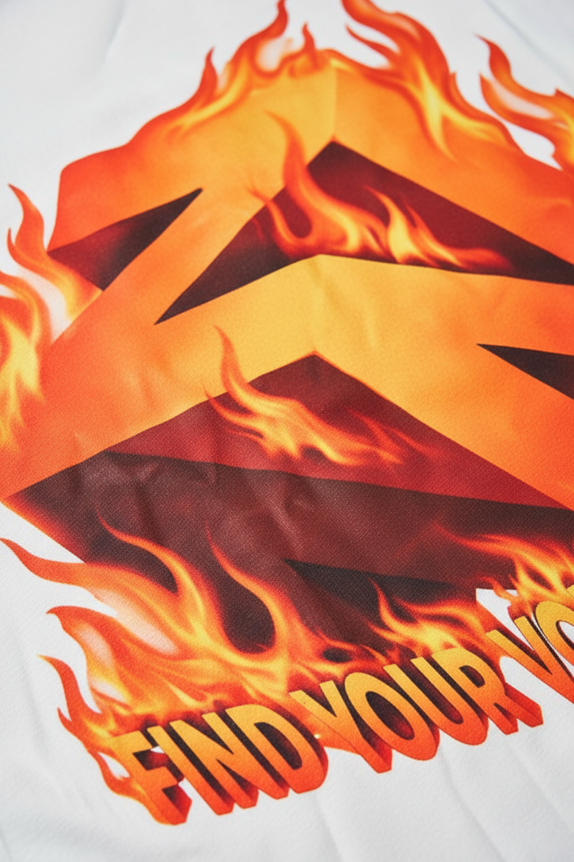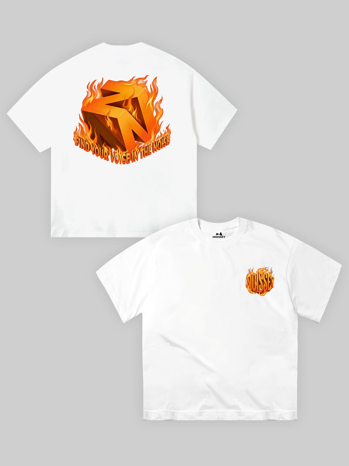NOISSEY "Flame Core" Logo Heavyweight Tee | "Find Your Voice" Back Graphic Fire Print