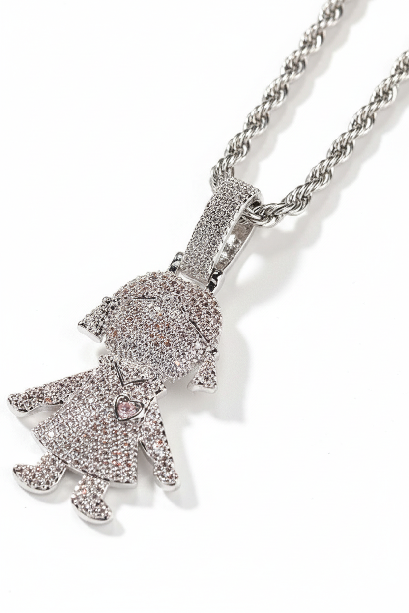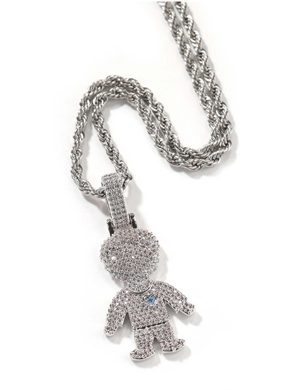 NOISSEY "Gummy Boy & Girl" Fully Iced-Out Cartoon Character Pendant & Rope Chain Necklace