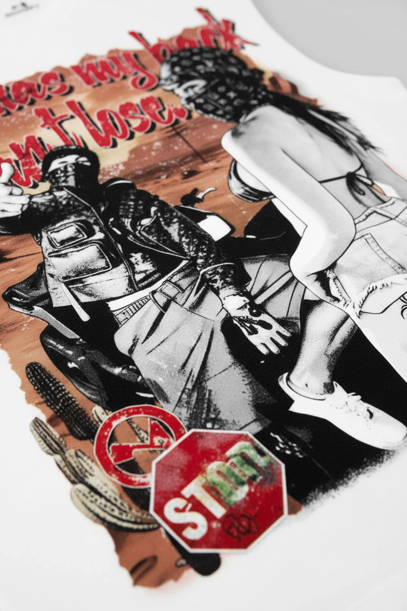 Size Recommendation: Take your standard size for the intended oversized look. The structured heavyweight fabric ensures the complex desert narrative remains crisp and impactful even in the heat of summer.