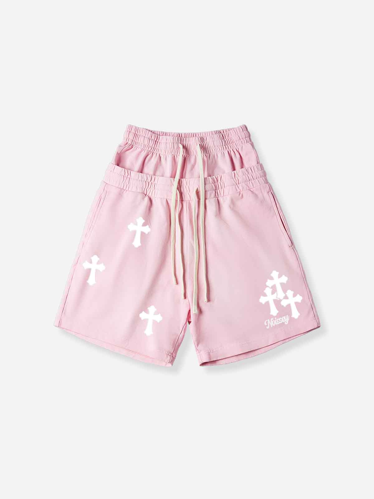 NOISSEY CHERRY BLOSSOM PINK WHITE CROSS CLUSTER GRAPHIC SHORTS