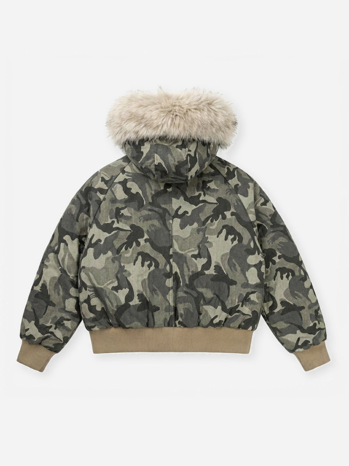 Retro Camouflage Faux Fur Hood Cotton Jacket