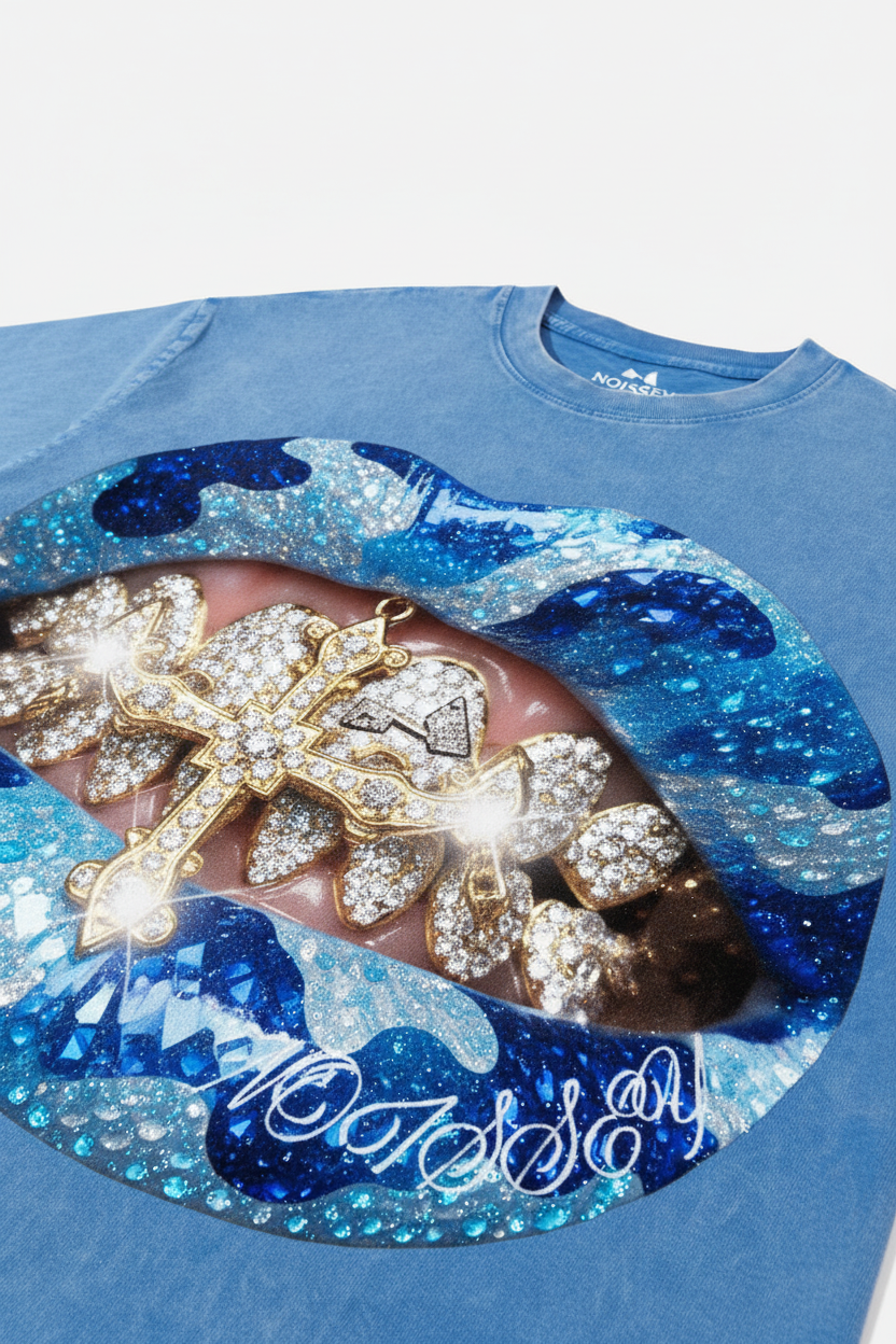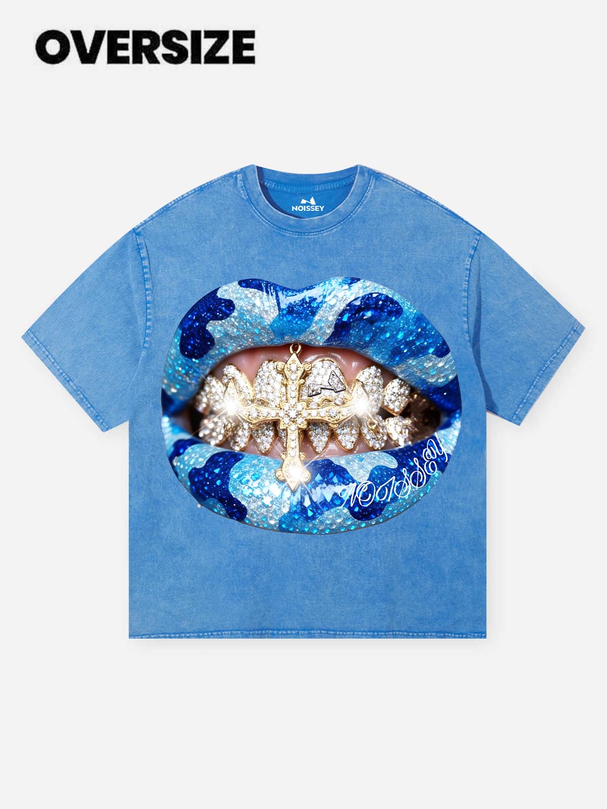 Blue grillz full-diamond camouflage print T-shirt