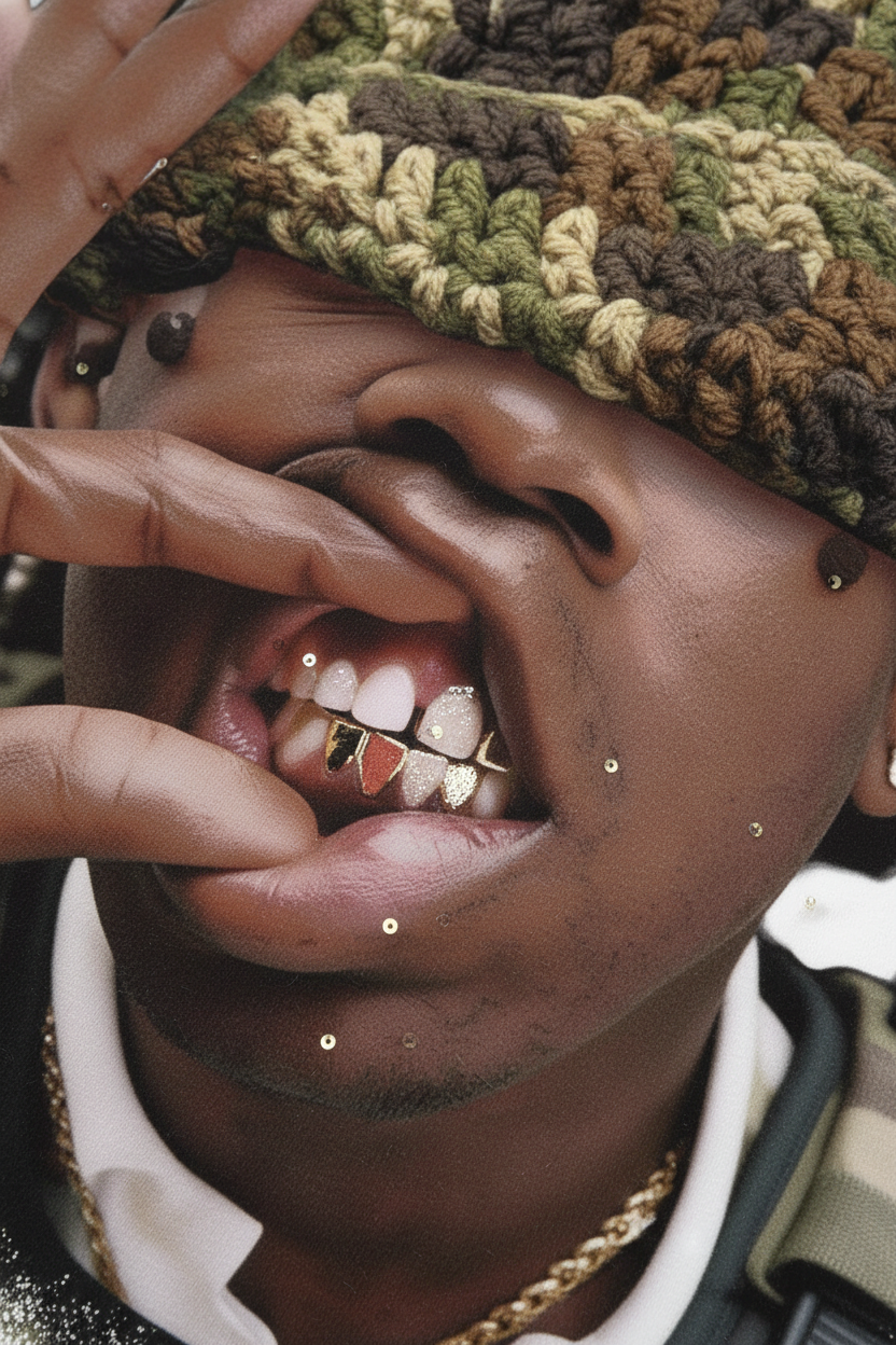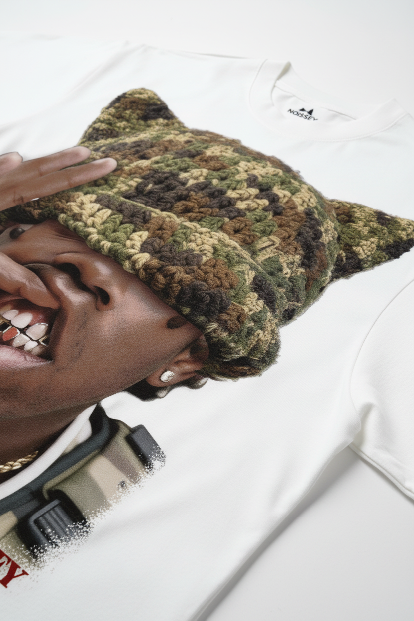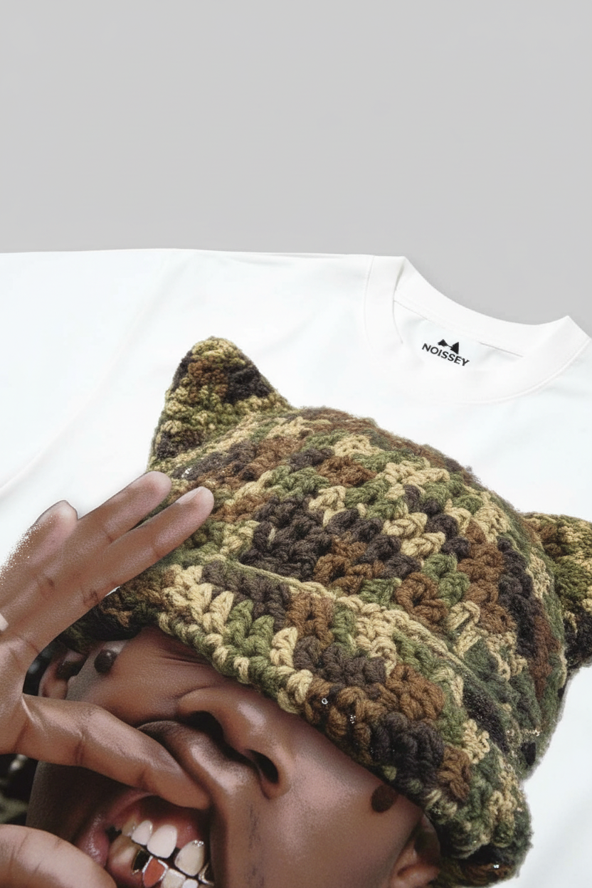 Camouflage Cat-Ear Knitted Hat Character Print Boxy Oversized T-shirt
