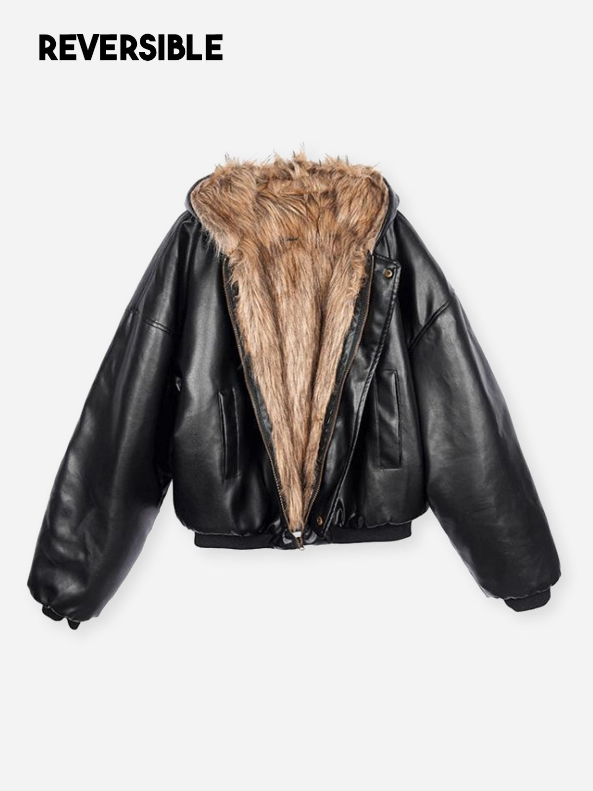 This double-sided wear reversible jacket combines shearling and cotton for a luxurious feel. Versatile and stylish, it offers two distinct looks in one garment. Perfect for adding a touch of elegance to any outfit, this jacket is both warm and fashionable.