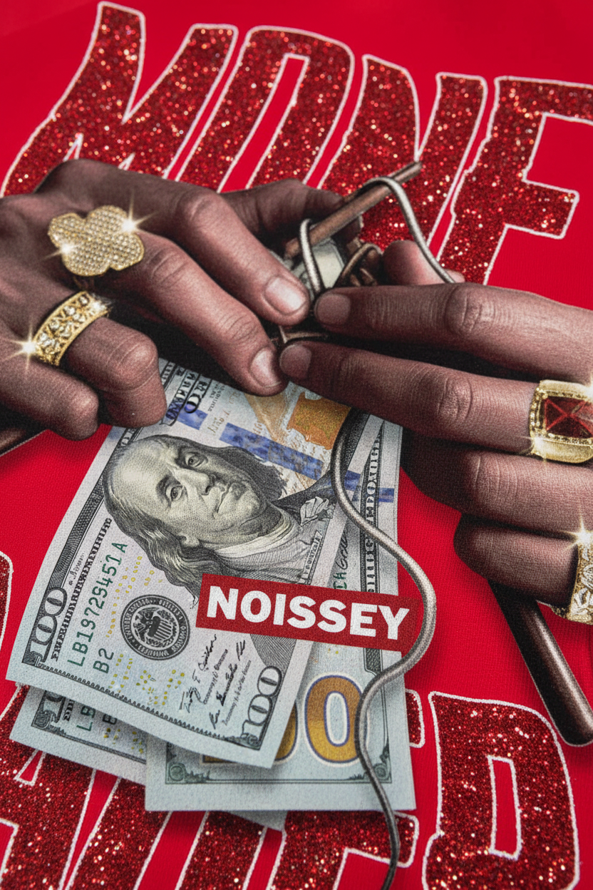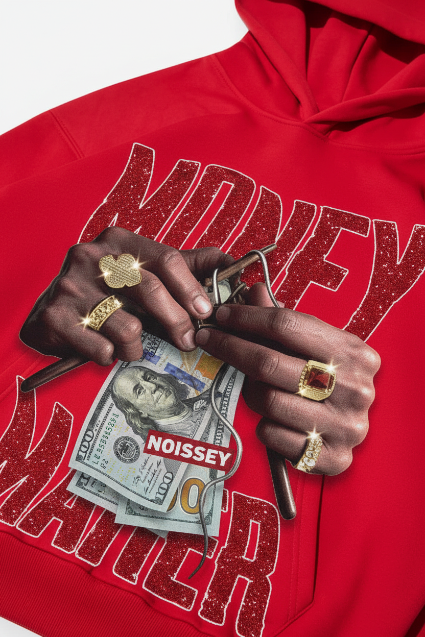 This NOISSEY hoodie is super eye-catching! The unique "Money Maker" rhinestone print shines brightly, making you the focus. It's comfy, fashionable, and versatile for casual outings or sports. Don't miss it!