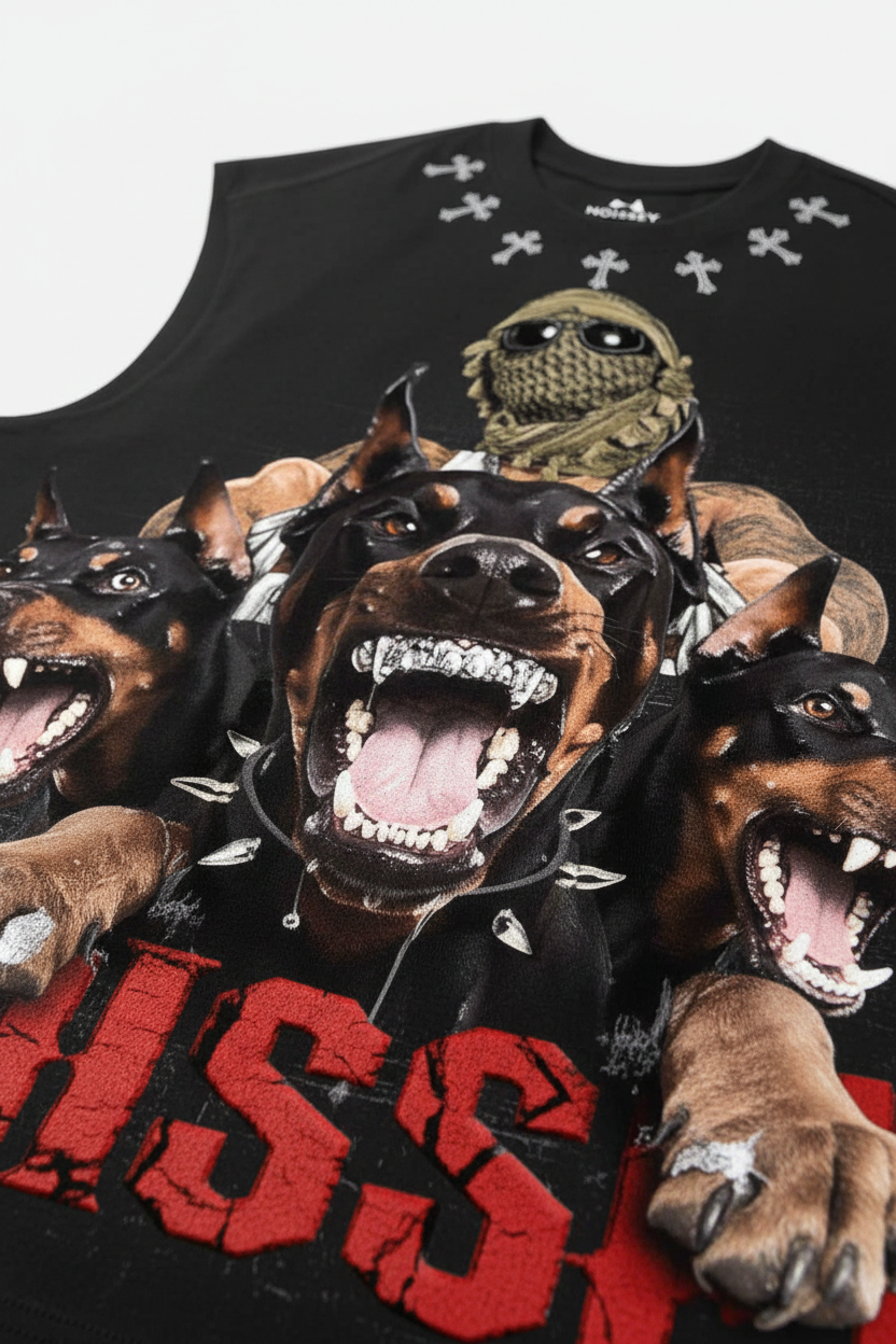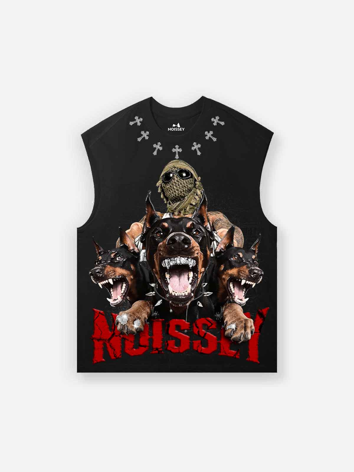 NOISSEY TRIPLE DOBERMAN DIAMOND CROSS MONEY GRAPHIC TANK TOP