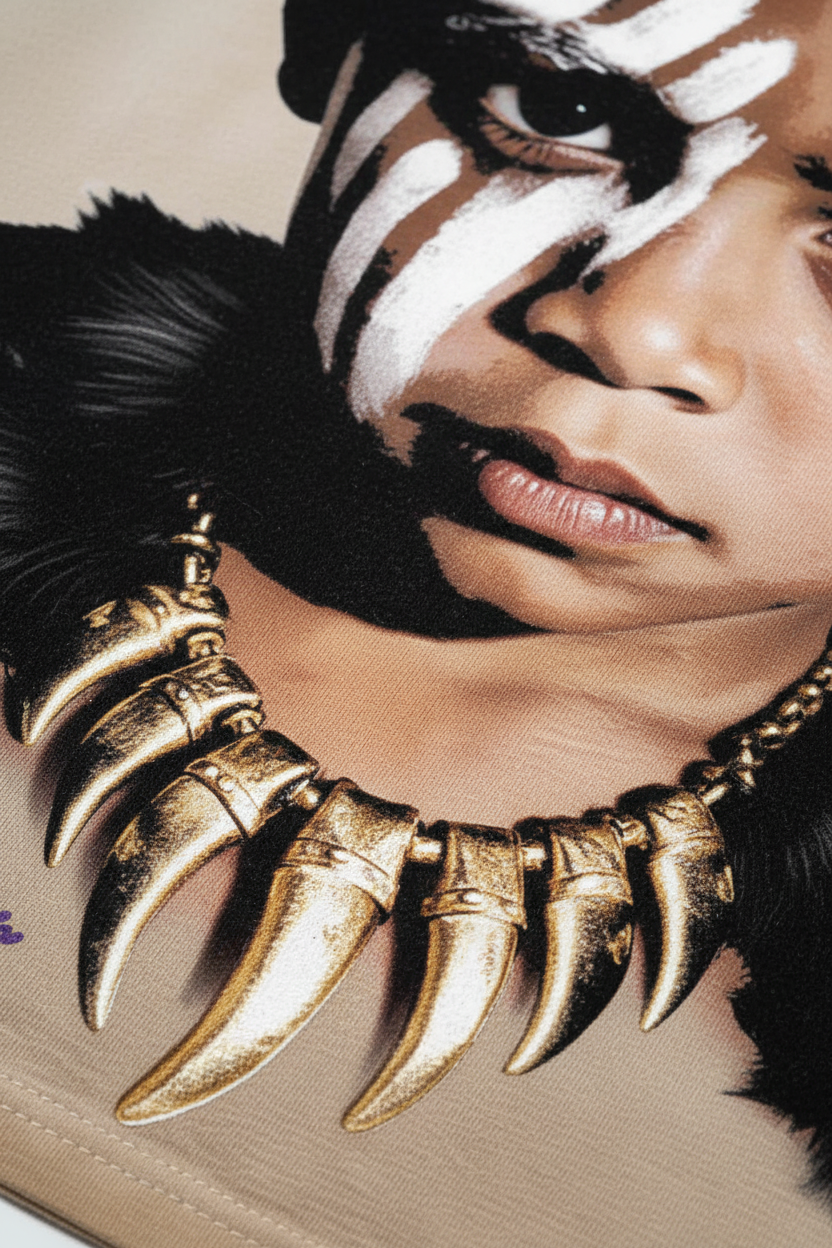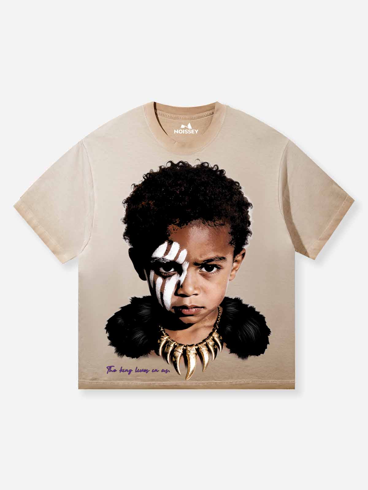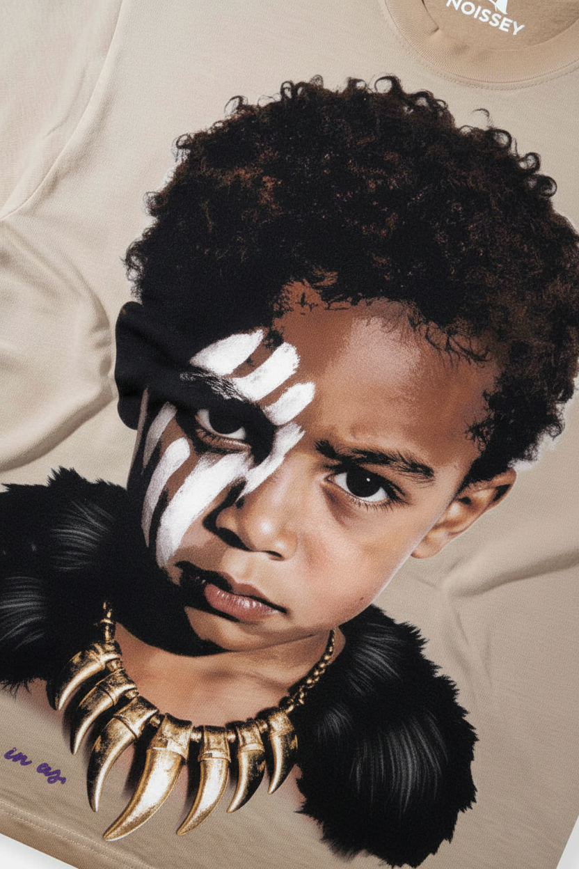 This T-shirt features a bold black panther kid art print with the slogan "The king lives in us," exuding fearlessness and confidence. Its loose fit is comfy, and the fabric is soft. Perfect for casual outings or trendy gatherings, it lets you shine and unleash your inner king!