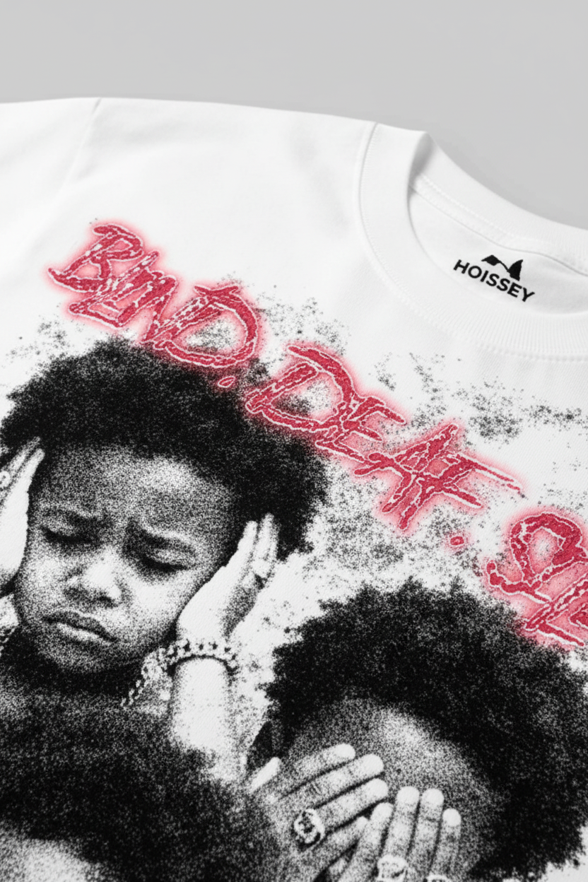 This T-shirt features a striking print of three child characters alongside the powerful words "BLIND. DEAF. SILENT." on its fabric. It's a bold fashion statement that sparks conversation and awareness. Crafted from soft, comfortable material, it ensures both style and ease. Perfect for those who dare to be different.