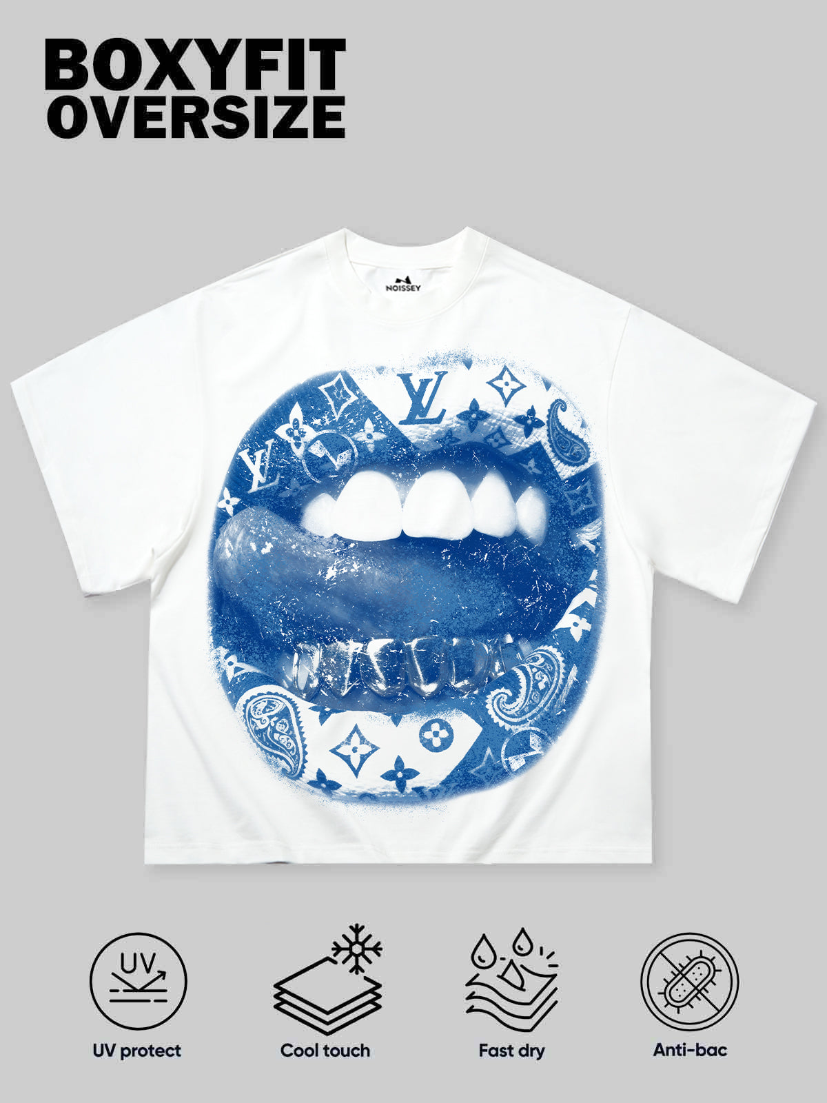 NOISSEY Blue Paisley Lip "Hustle" Cooling Boxy Tee